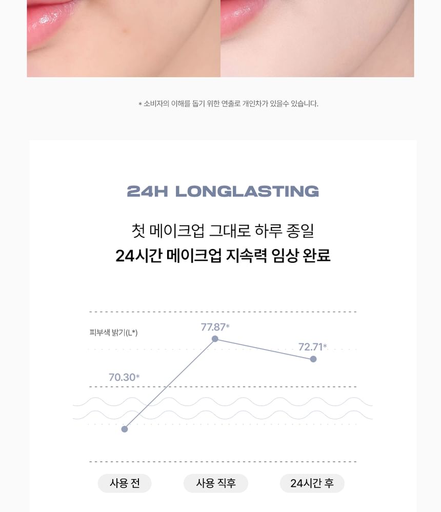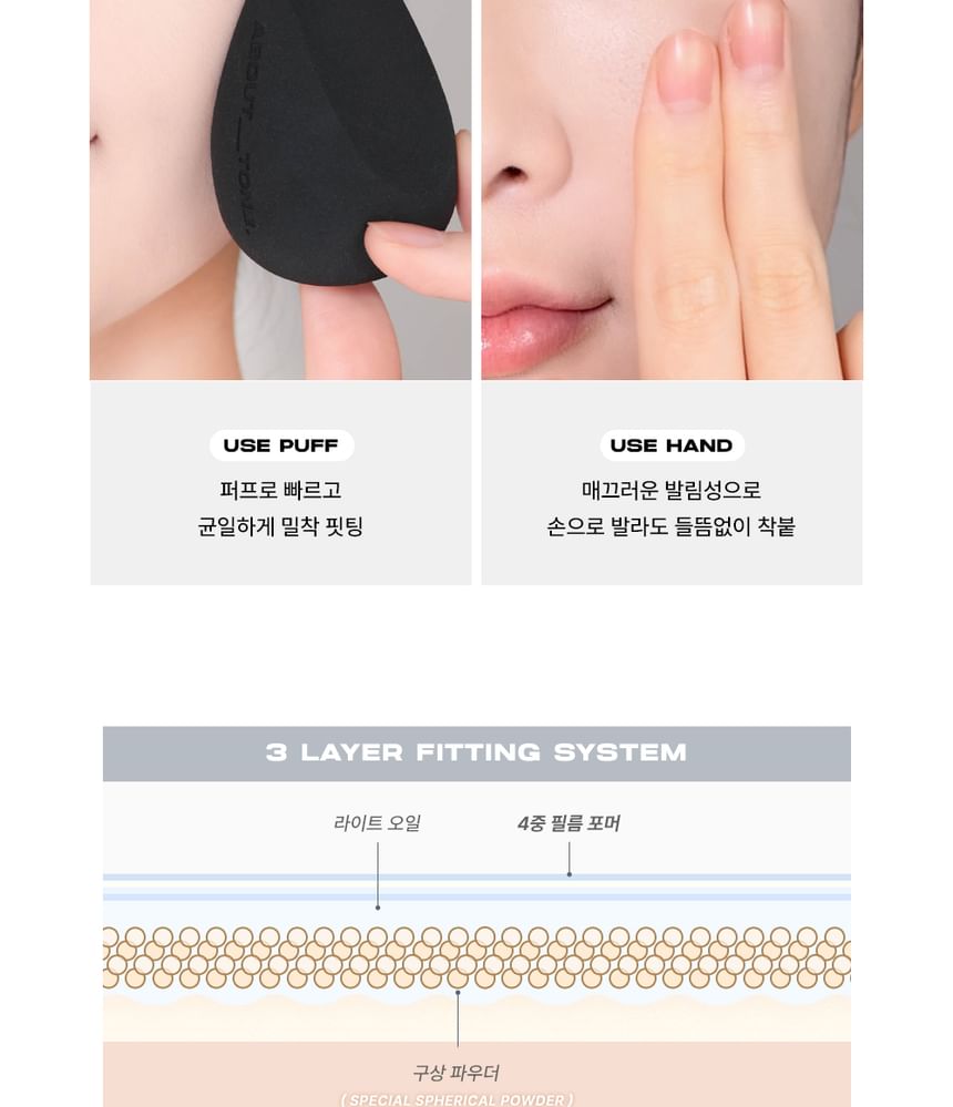 After shaking, apply a proper amount on skin and spread gently with fingertips or makeup sponge.