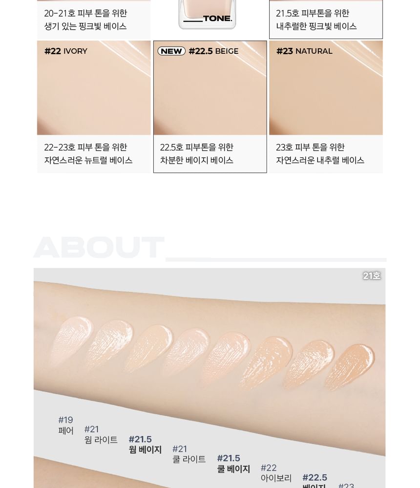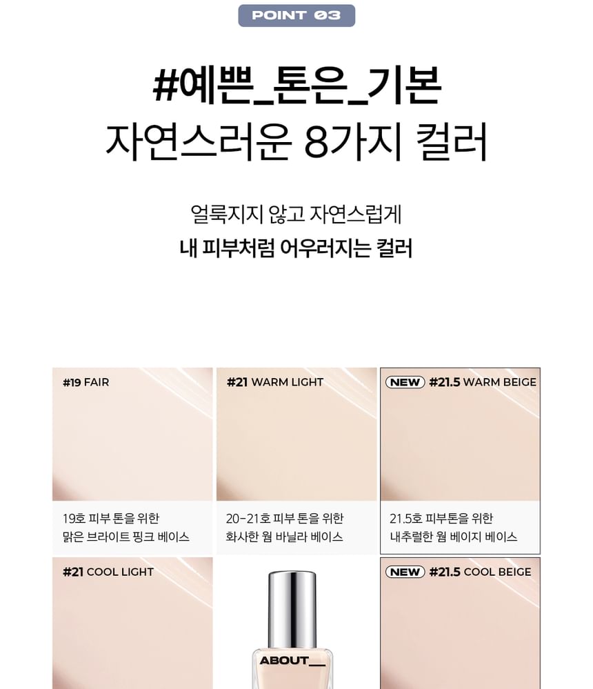 #21 Warm Light: Warm vanilla base color suitable for no.20-21 skin tone.