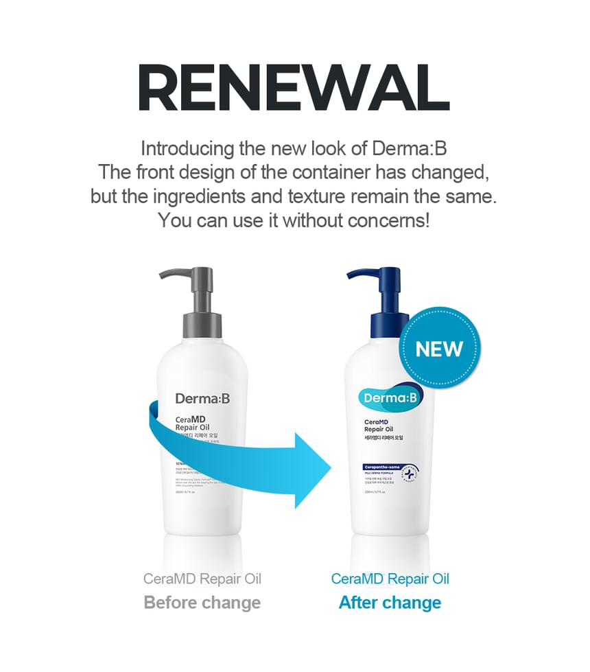 Radiant your Skin Care with the [Derma-B] *renewal* CeraMD Repair Oil 200ml! we aim to provide you best korean products to take good care of your skin, including Body care, Body Lotion & Oils, Body Lotion & Oils. Hydra Body Lotion & Oils online.