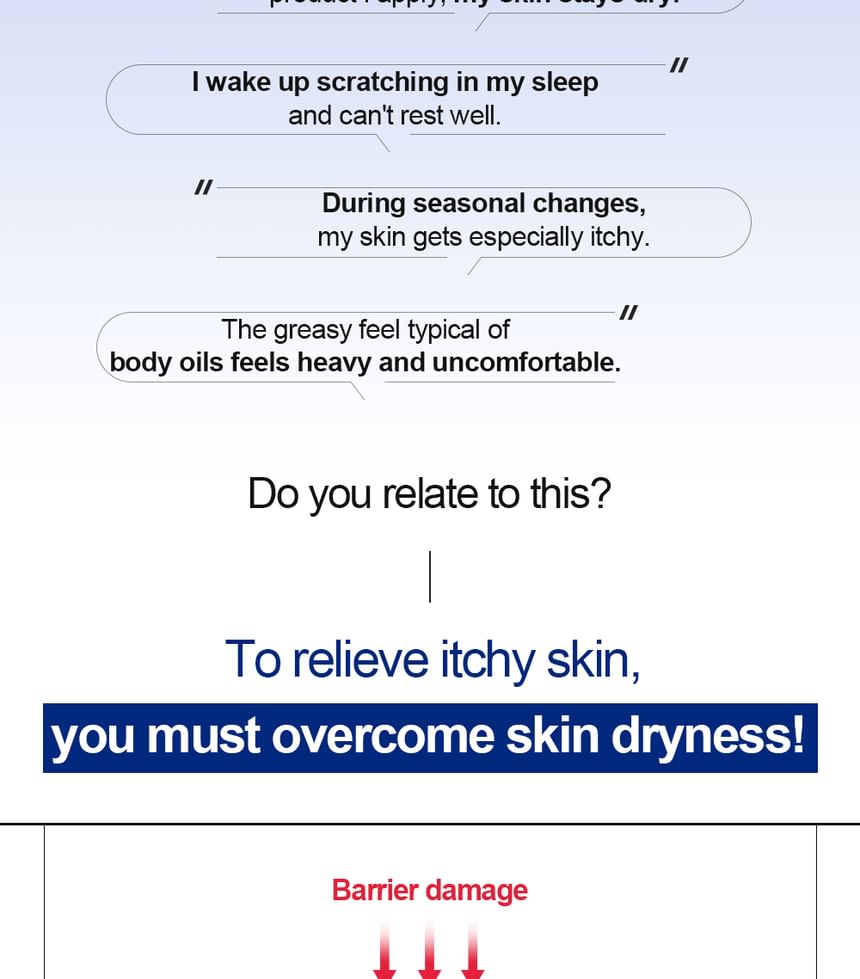 Forms a moisturizing barrier on the skin to relieve itchiness and leaves your skin supple.