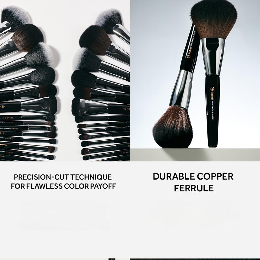 Makeup artist-selected brush bristles and precise cutting technique for even and delicate color application.